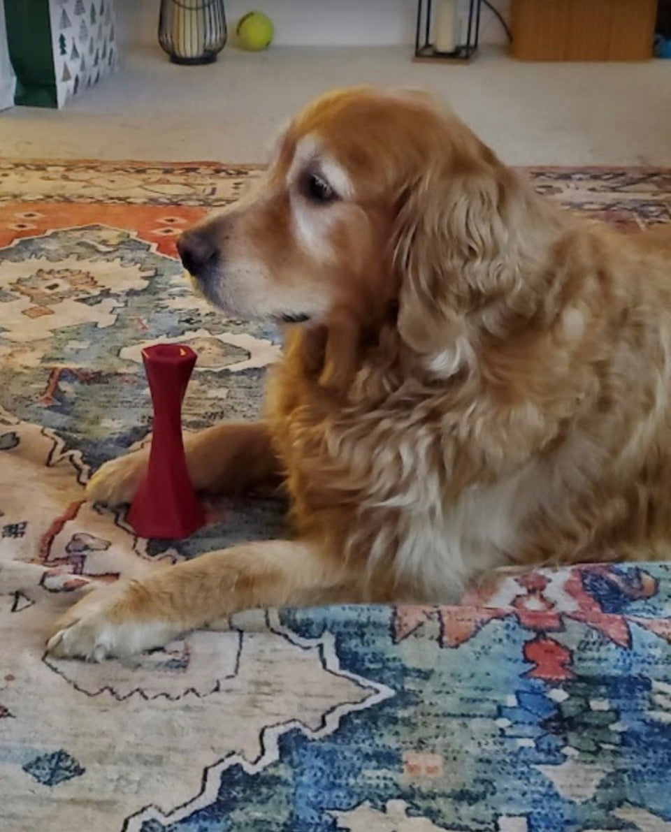 Fetch it, flip it, tug it, and fill it with your dog's favorite spreadable treat providing physical enrichment and focused calm time.